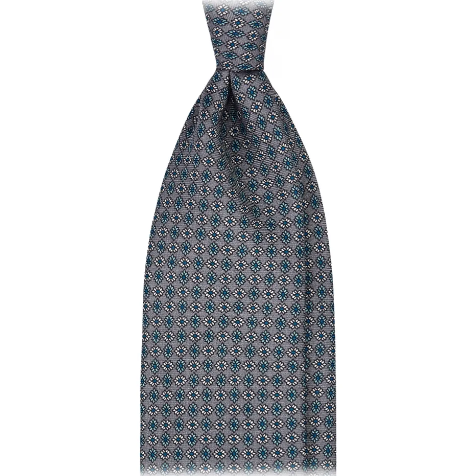 Viola Milano – Mystix Floral Selftipped Italian Silk Tie – Grey – Handmade in Italy – Luxury Exclusive Collection