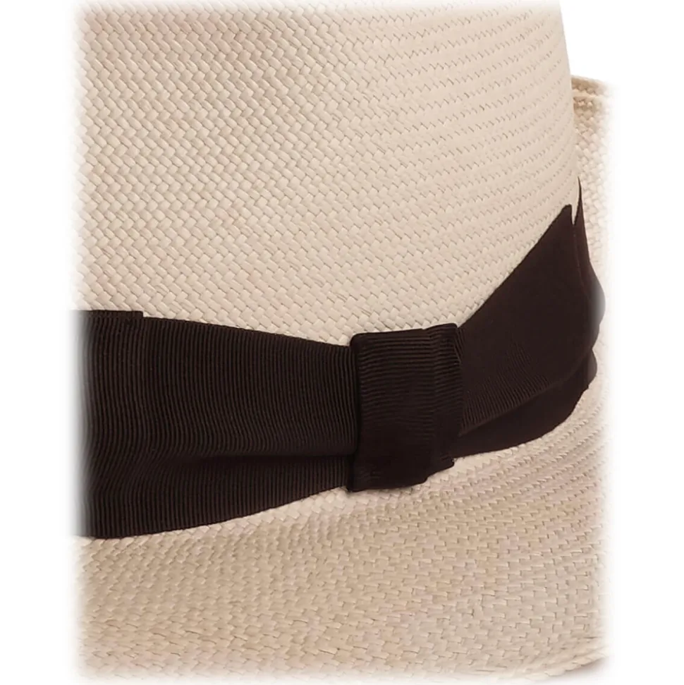 Viola Milano – Natural Panama Hat Italia with Contrasting Gross Grain – Brown – Handmade in Italy – Luxury Exclusive Collection