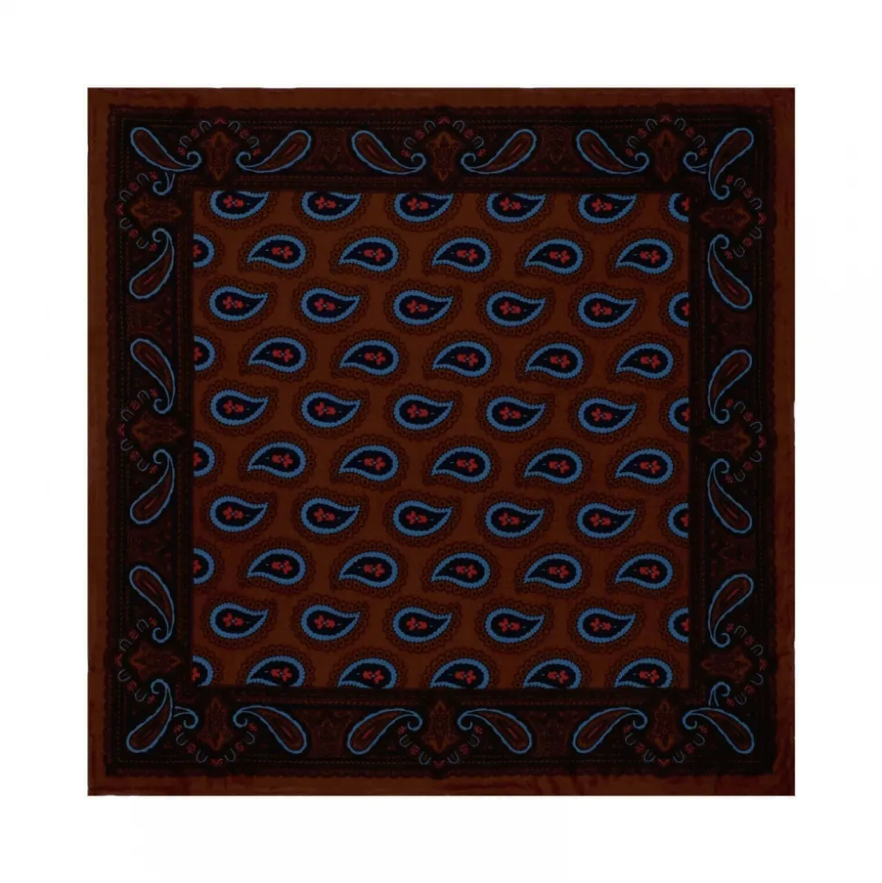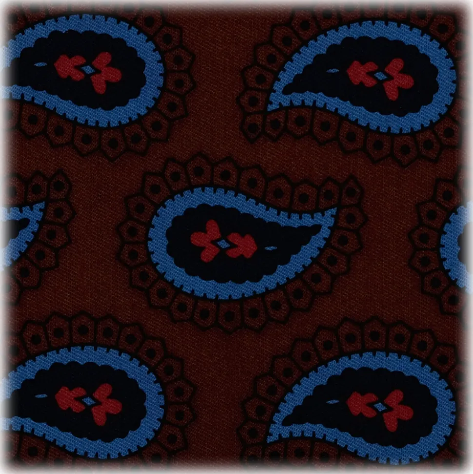 Viola Milano – Paisley Pattern Silk Pocket Square – Brown Mix – Handmade in Italy – Luxury Exclusive Collection