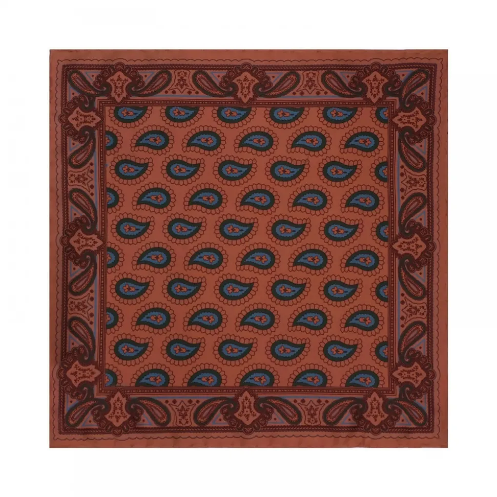 Viola Milano – Paisley Pattern Silk Pocket Square – Orange Mix – Handmade in Italy – Luxury Exclusive Collection