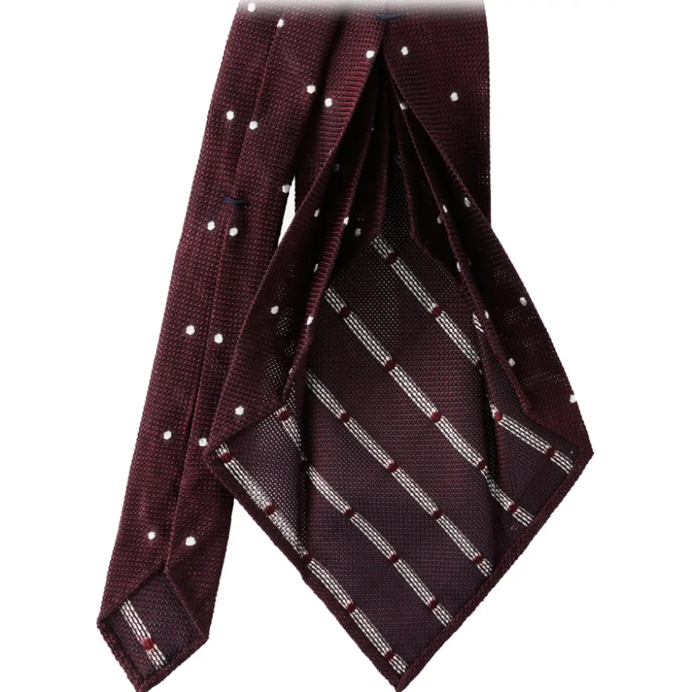 Viola Milano – Polka Dot Grenadine 7-Fold Unlined Tie – Wine/White – Handmade in Italy – Luxury Exclusive Collection