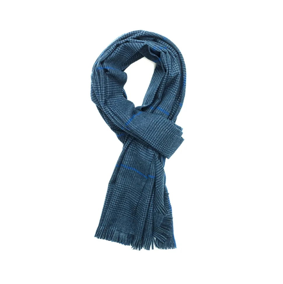Viola Milano – Prince of Wales Wool Scarf – Blue Mix – Handmade in Italy – Luxury Exclusive Collection