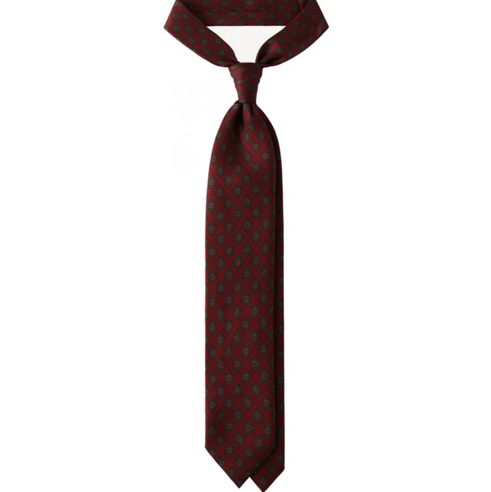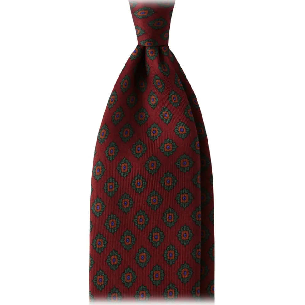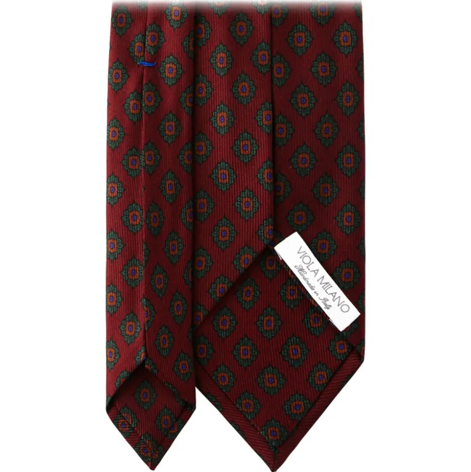 Viola Milano – Rosette Pattern Selftipped Silk Tie – Wine – Handmade in Italy – Luxury Exclusive Collection