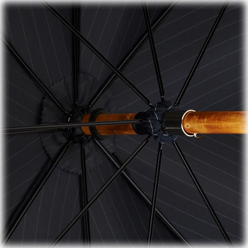 Viola Milano – Shalk Stripe Chestnut Umbrella – Navy and Ivory – Handmade in Italy – Luxury Exclusive Collection