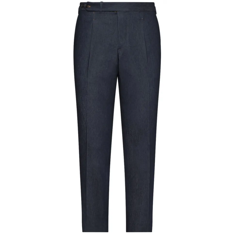 Viola Milano – Single Pleated Sartorial Denim Pants with Side Adjusters – Classic – Handmade in Italy – Luxury Exclusive Collection