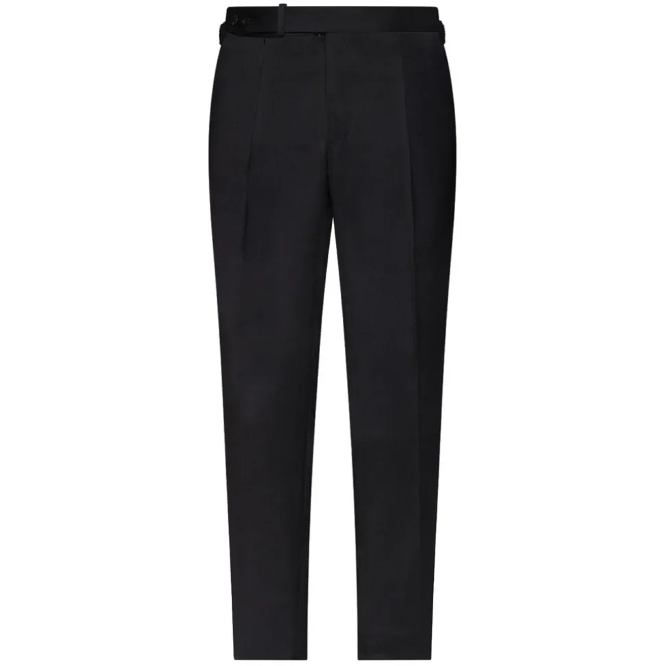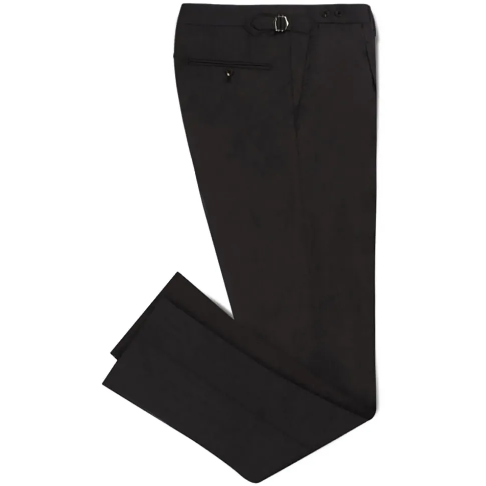 Viola Milano – Single Pleated Sartorial Wool Pants with Side Adjusters – Dark Grey – Handmade in Italy – Luxury Exclusive Collection