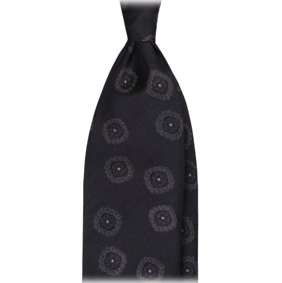 Untipped 3-folded Woven Silk Jacquard Tie With Hand Rolled Edges.
