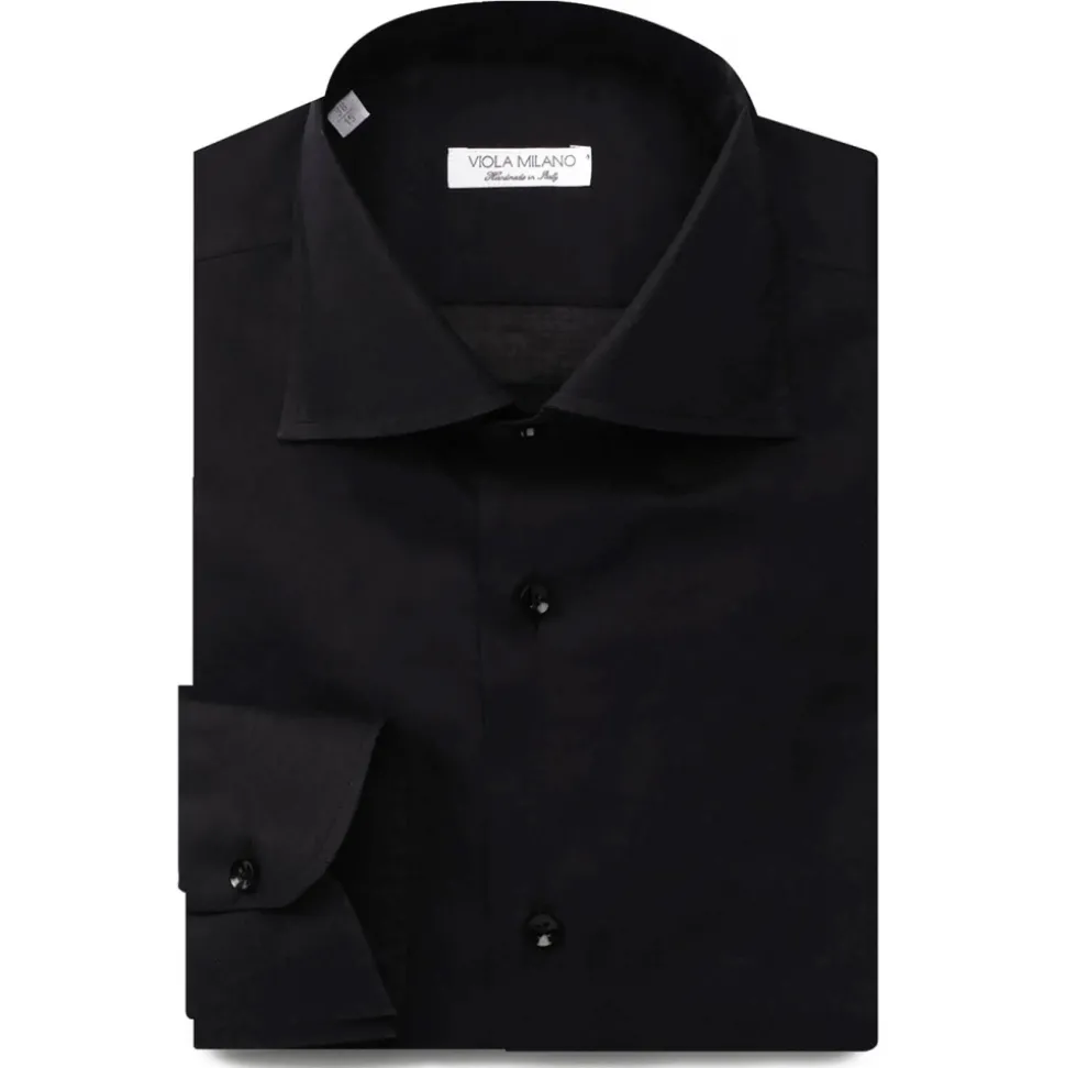 Viola Milano – Solid Cut-Away Collar Dress Shirt – Midnight Navy – Handmade in Italy – Luxury Exclusive Collection