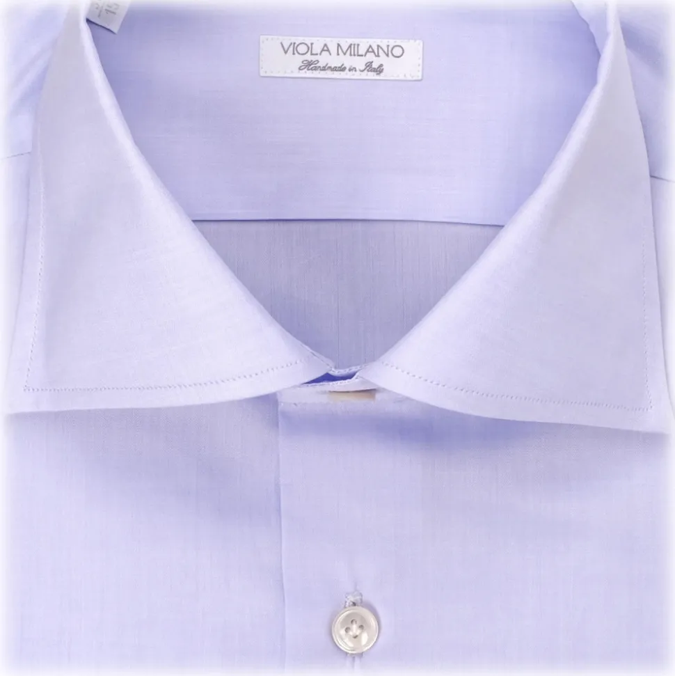 Viola Milano – Solid Handmade Cutaway-Collar Shirt – Purple Blue – Handmade in Italy – Luxury Exclusive Collection