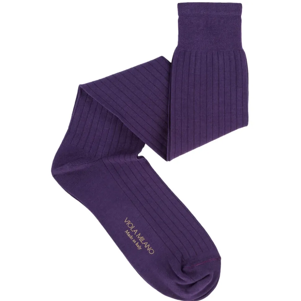 Viola Milano – Solid Over-The-Calf Cotton/Silk Socks – Purple – Handmade in Italy – Luxury Exclusive Collection