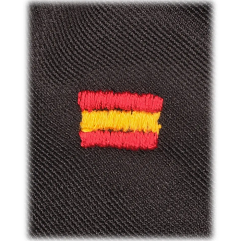 Viola Milano – Spanish Flag Handrolled Woven Silk Jacquard Tie – Navy – Handmade in Italy – Luxury Exclusive Collection