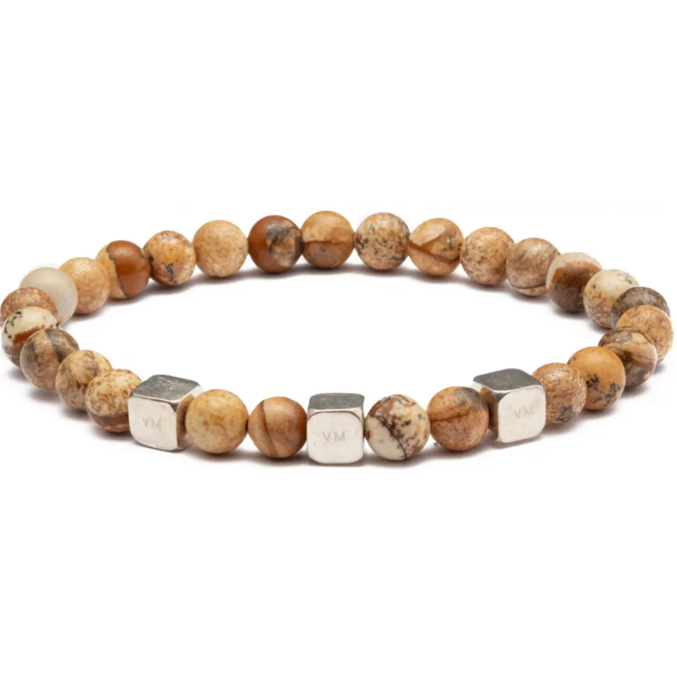 Natural Gemstone 6 mm bracelet with a sterling silver square cubes