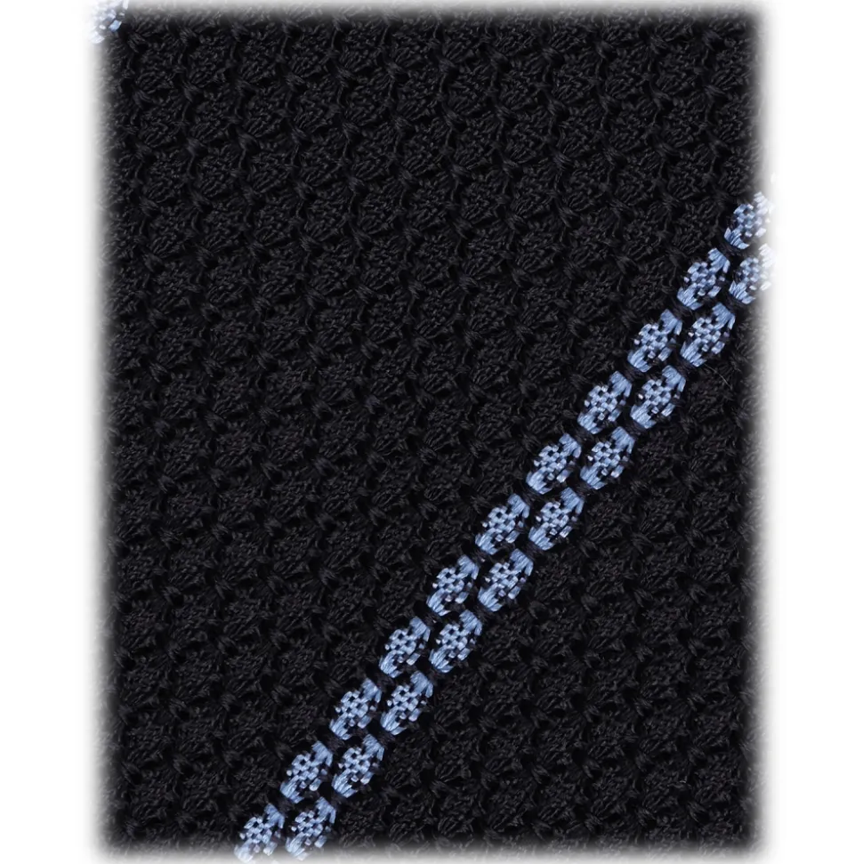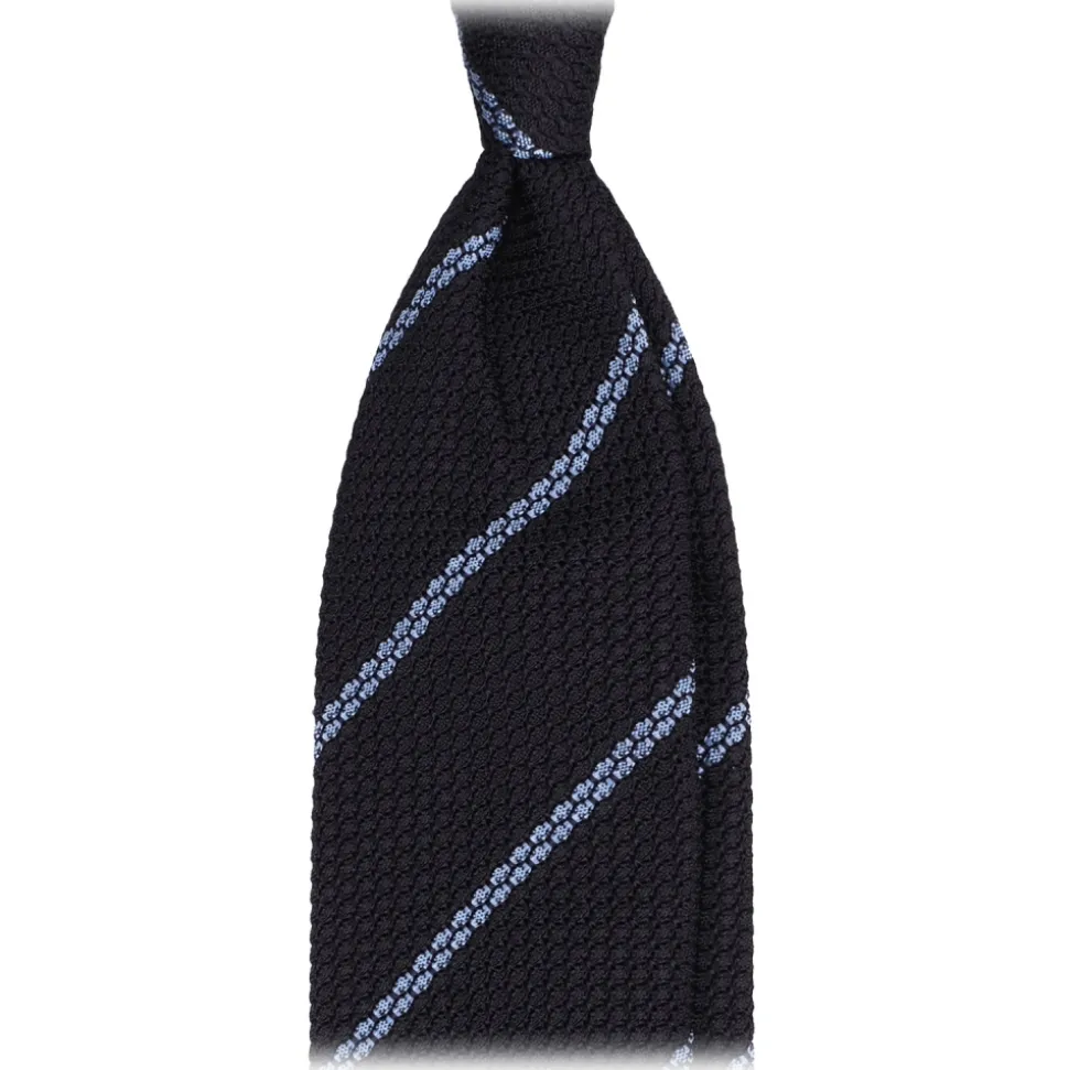 Viola Milano – Stripe 3-Fold Untipped Grenadine Tie – Navy/Sea – Handmade in Italy – Luxury Exclusive Collection