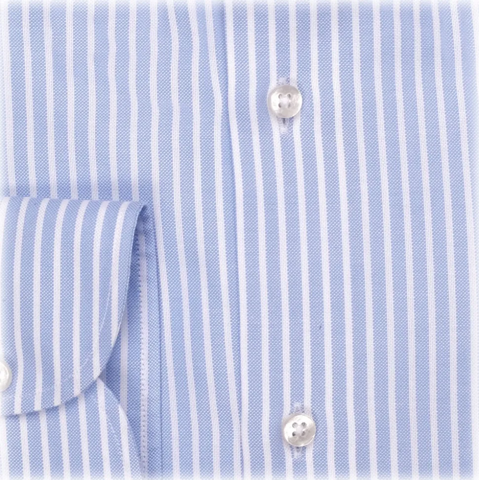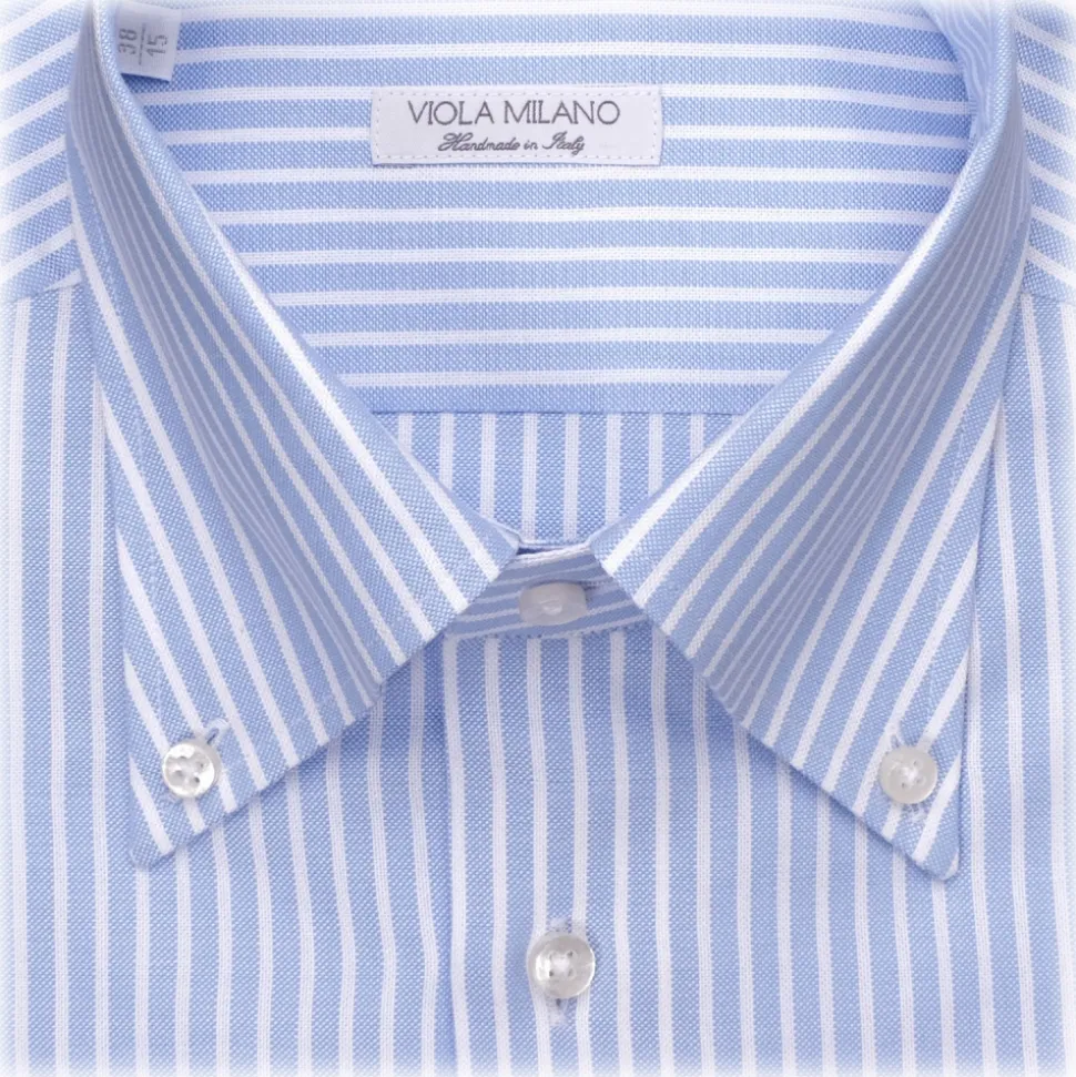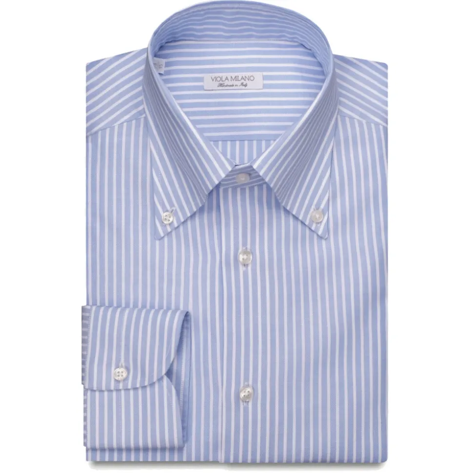 Viola Milano – Stripe American Oxford Button-Down Collar Dress Shirt – Sea/White – Handmade in Italy – Luxury Exclusive Collection