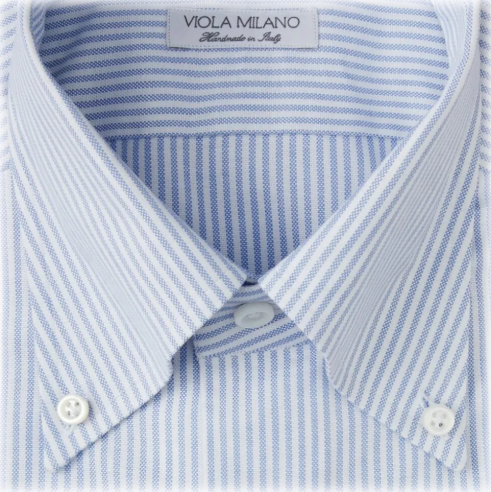 Viola Milano – Stripe American Oxford Button-Down Collar Dress Shirt – Blue/White – Handmade in Italy – Luxury Exclusive Collection