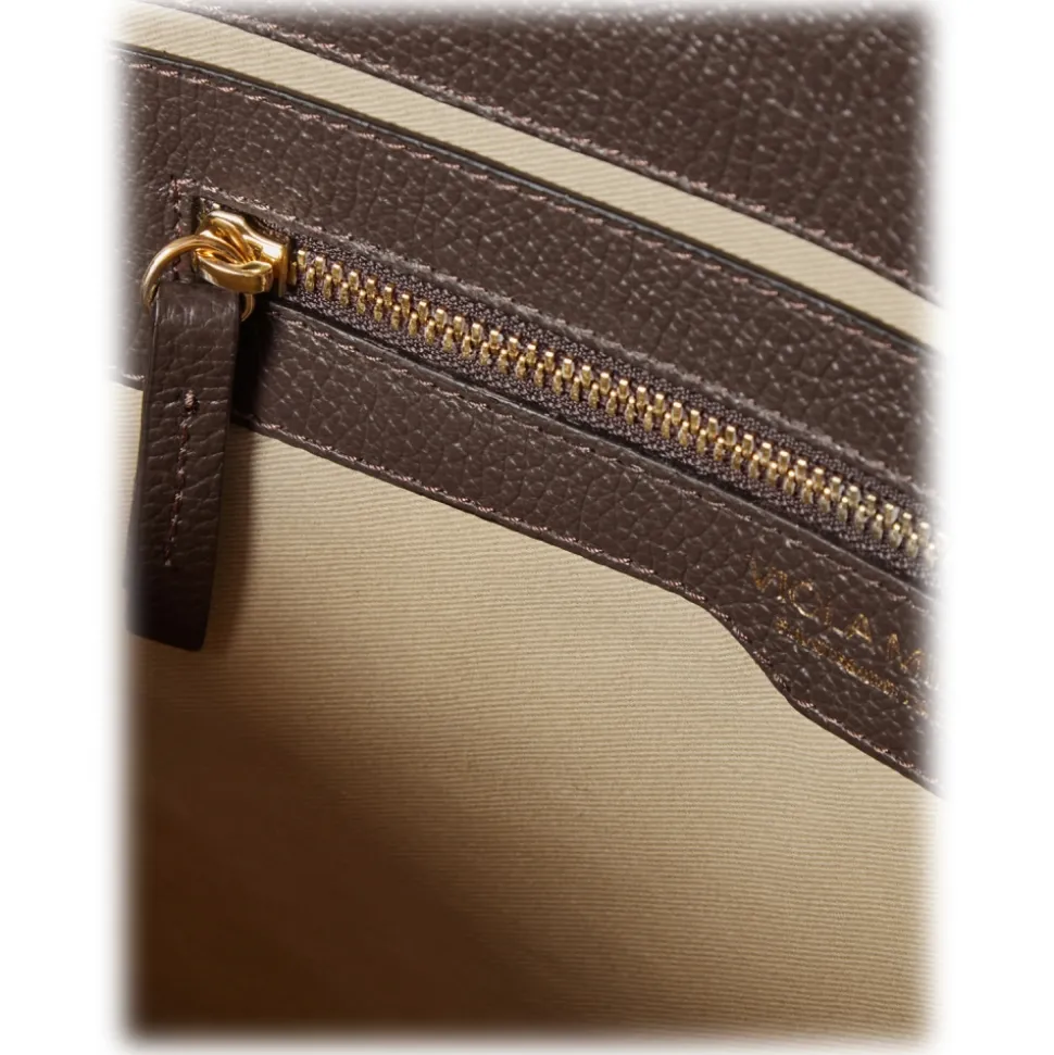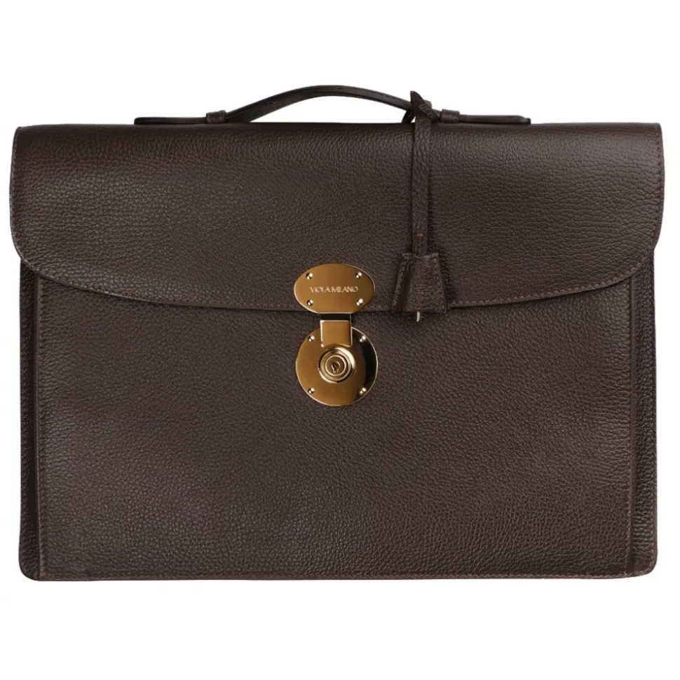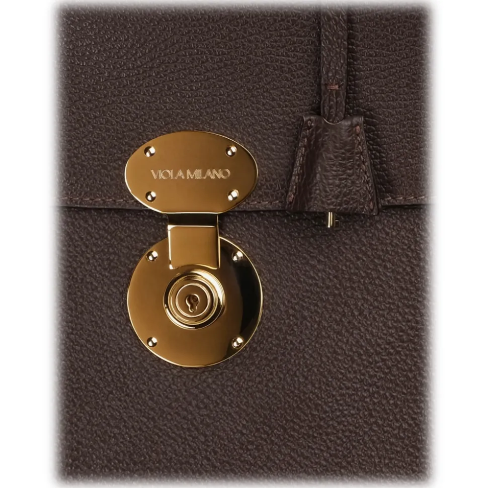 Viola Milano – The Light City Gold Lock Briefcase – Brown – Handmade in Italy – Luxury Exclusive Collection