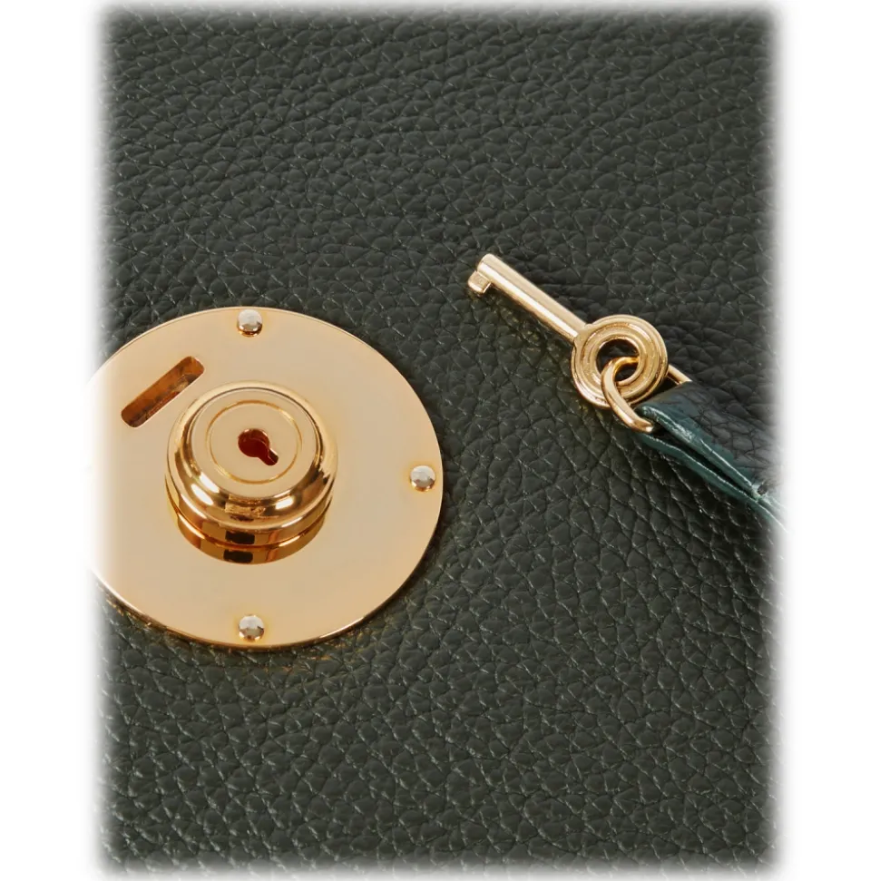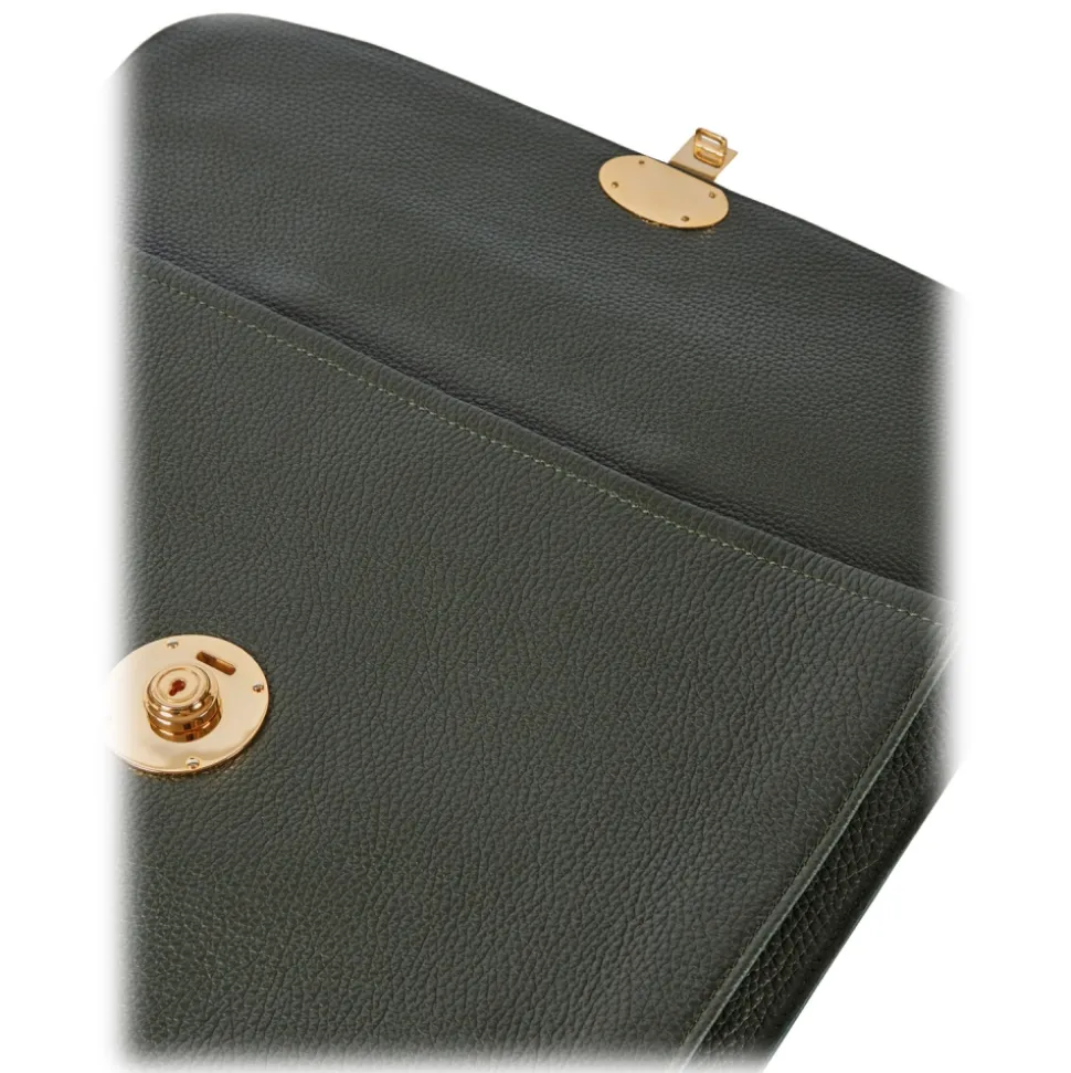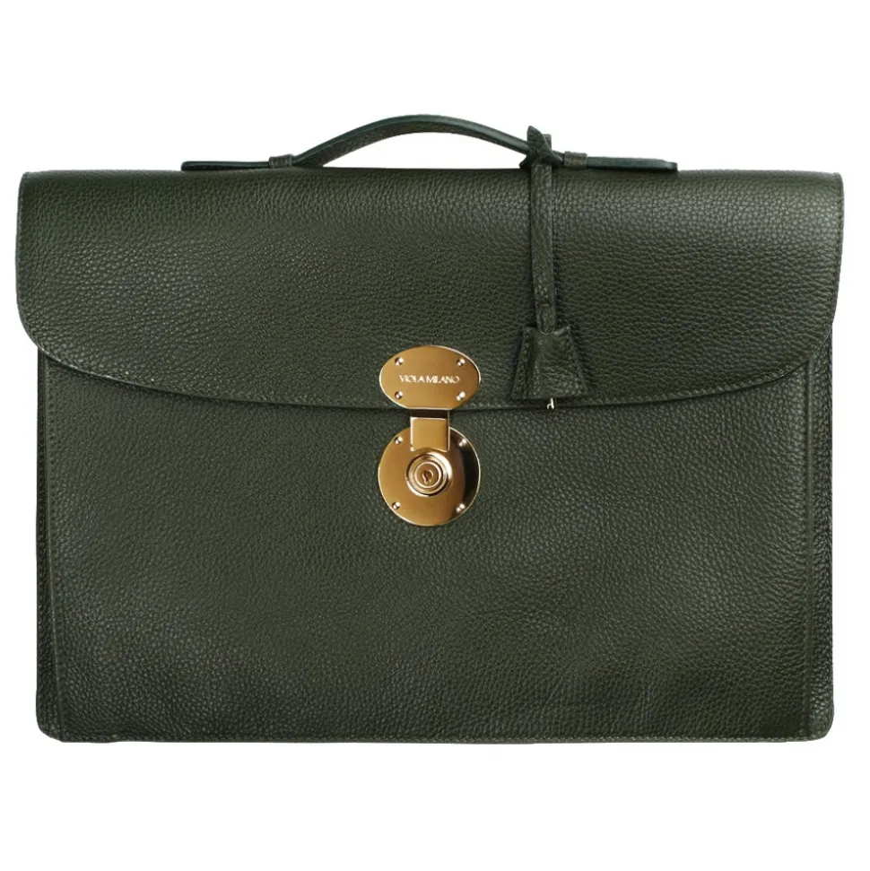Viola Milano – The Light City Gold Lock Briefcase – Loden Green – Handmade in Italy – Luxury Exclusive Collection