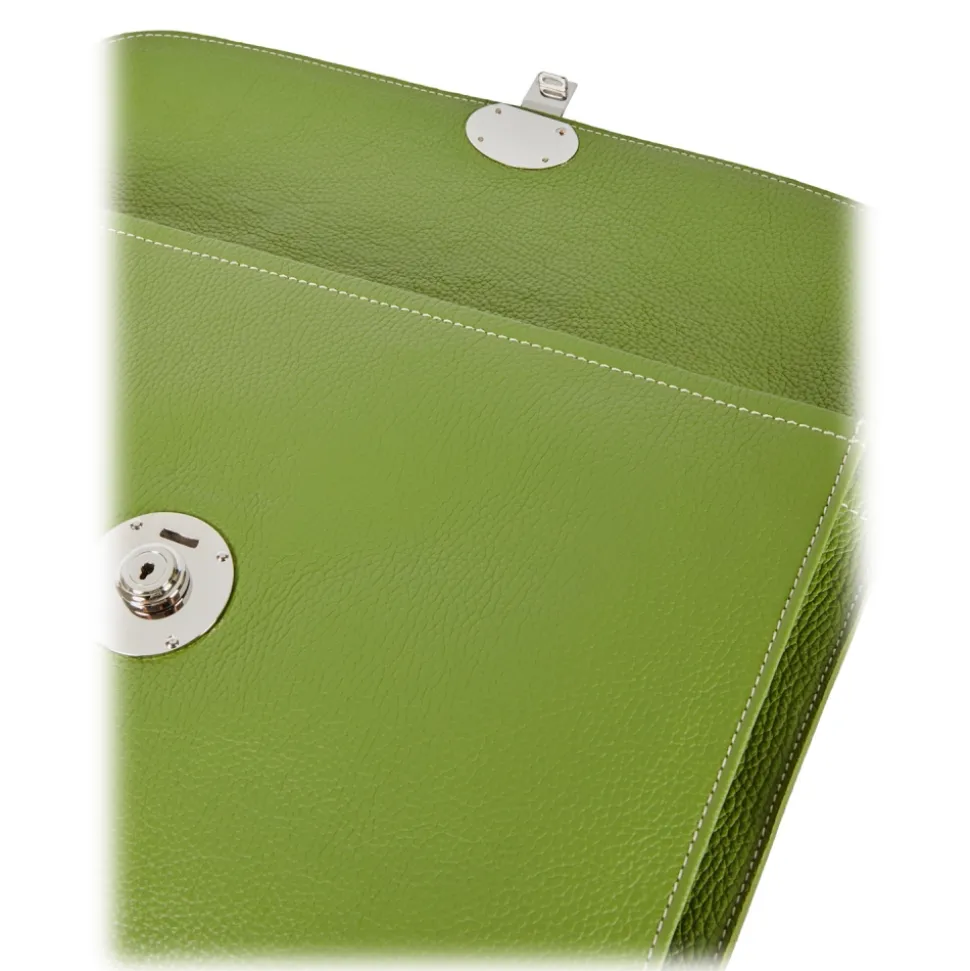 Viola Milano – The Light City Silver Lock Briefcase – Lime Green – Handmade in Italy – Luxury Exclusive Collection