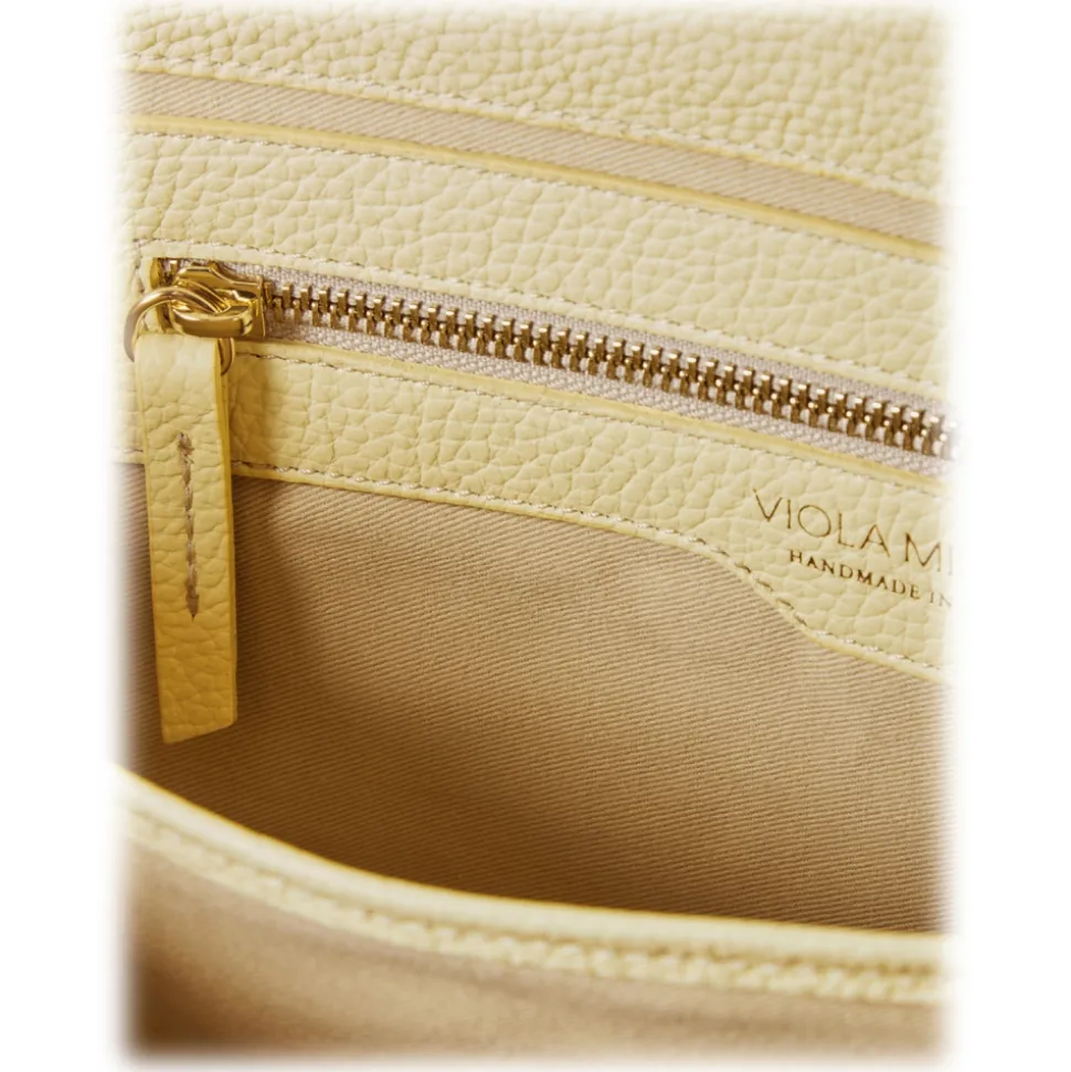 Viola Milano – The Light City Silver Lock Briefcase – Pale Lemon – Handmade in Italy – Luxury Exclusive Collection
