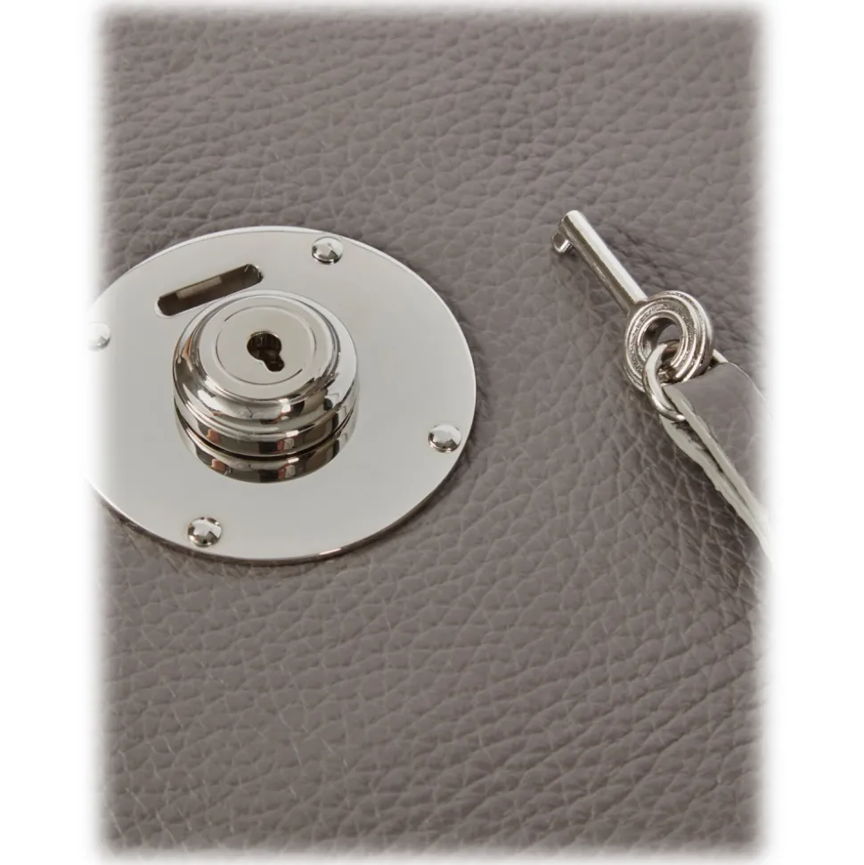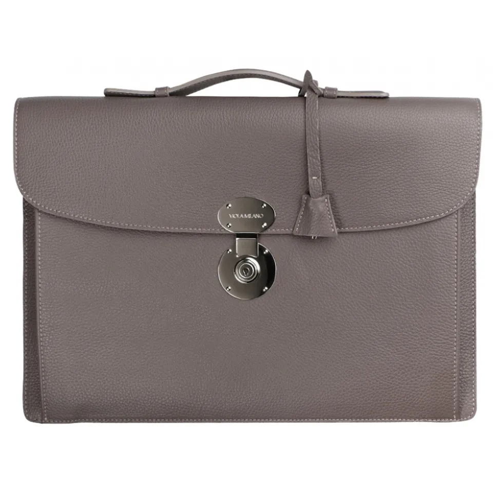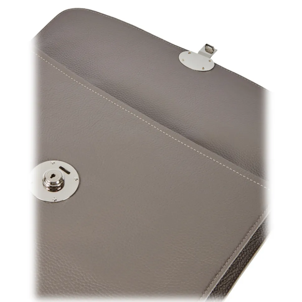 Viola Milano – The Light City Silver Lock Briefcase – Taupe Grey – Handmade in Italy – Luxury Exclusive Collection