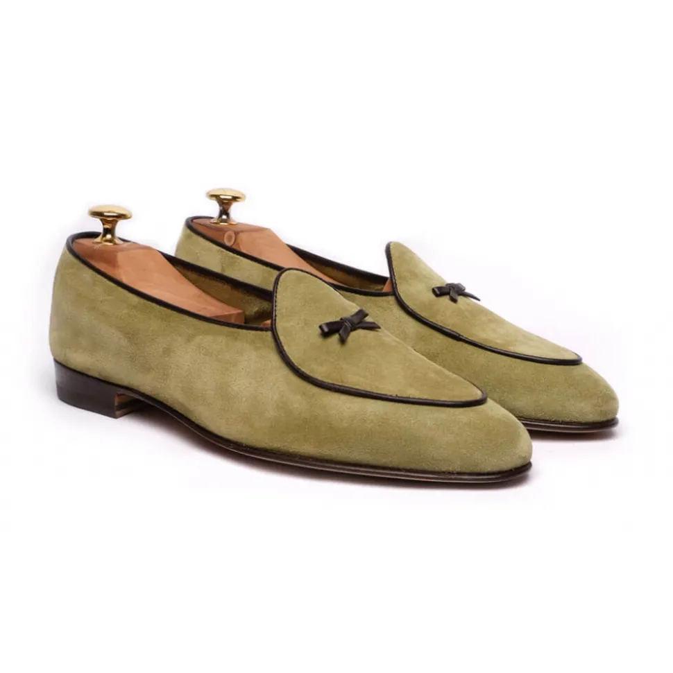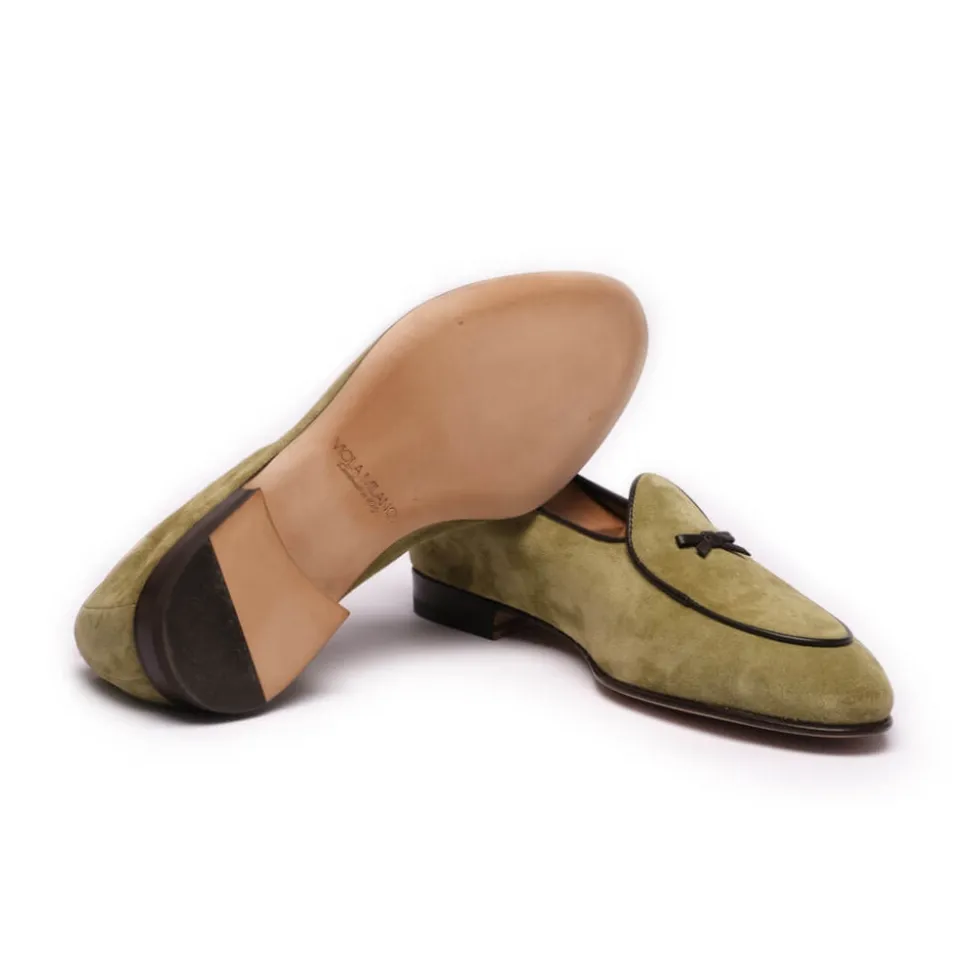 Viola Milano – Unlined Belgian Loafer – Pistache – Handmade in Italy – Luxury Exclusive Collection