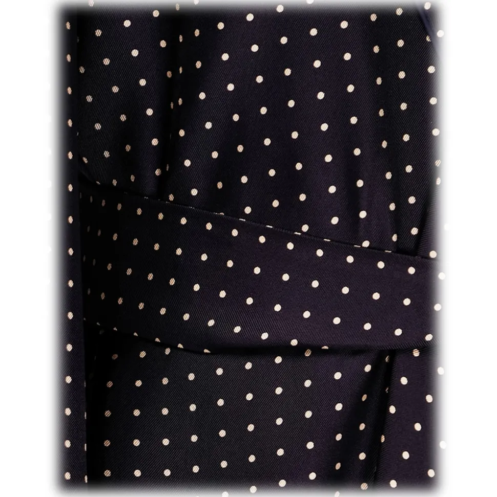 Viola Milano – Unlined Luxury Handprinted Silk Dressing Gown – Navy Spot – Handmade in Italy – Luxury Exclusive Collection