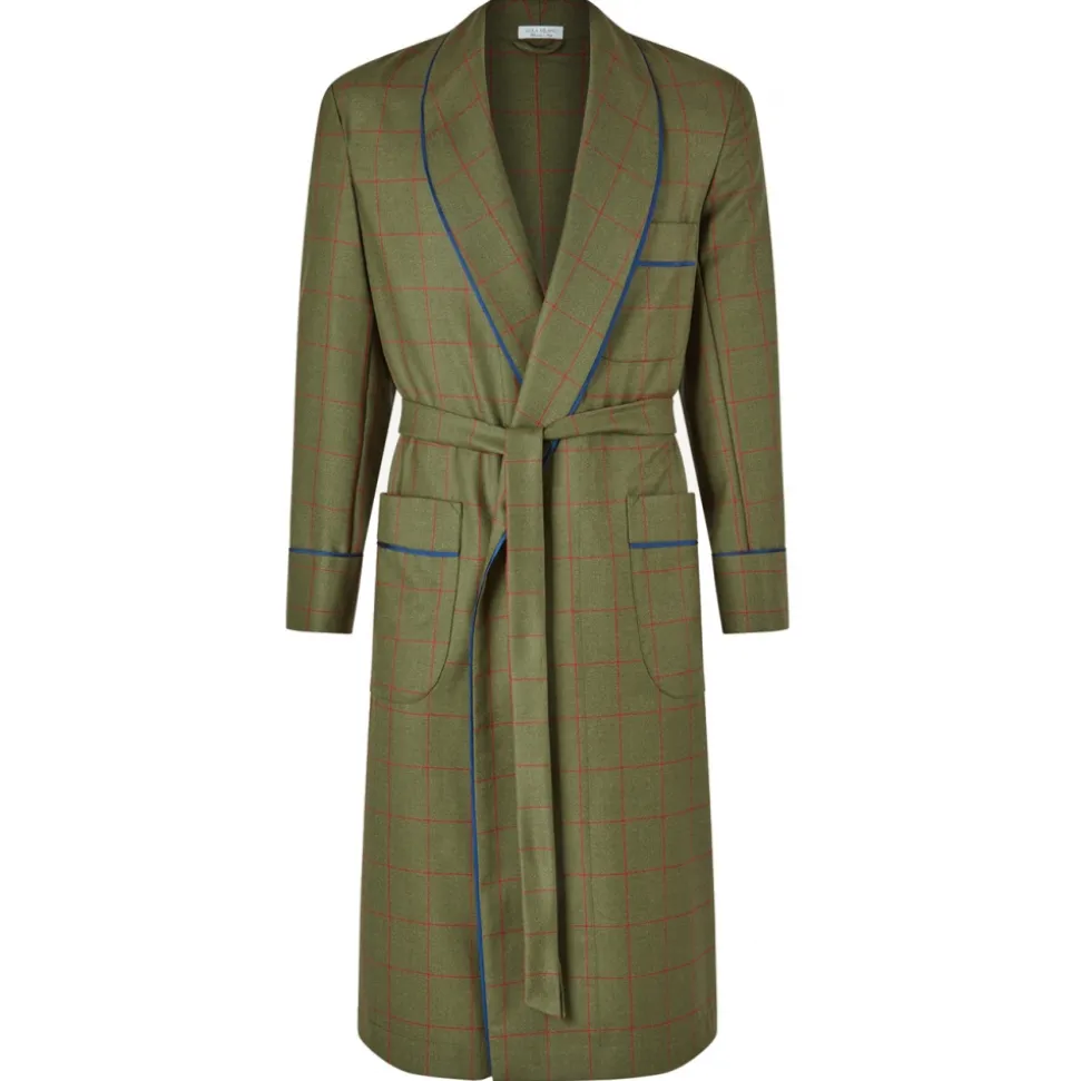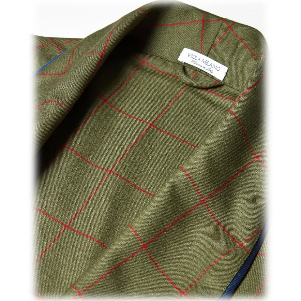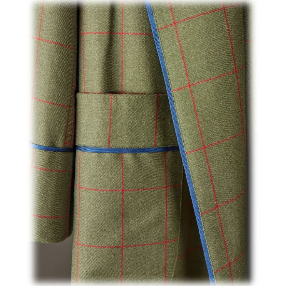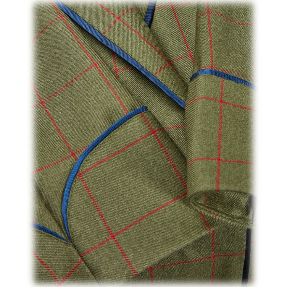 Viola Milano – Unlined Royal British Wool/Silk Dressing Gown – Green/Red Check – Handmade in Italy – Luxury Exclusive Collection