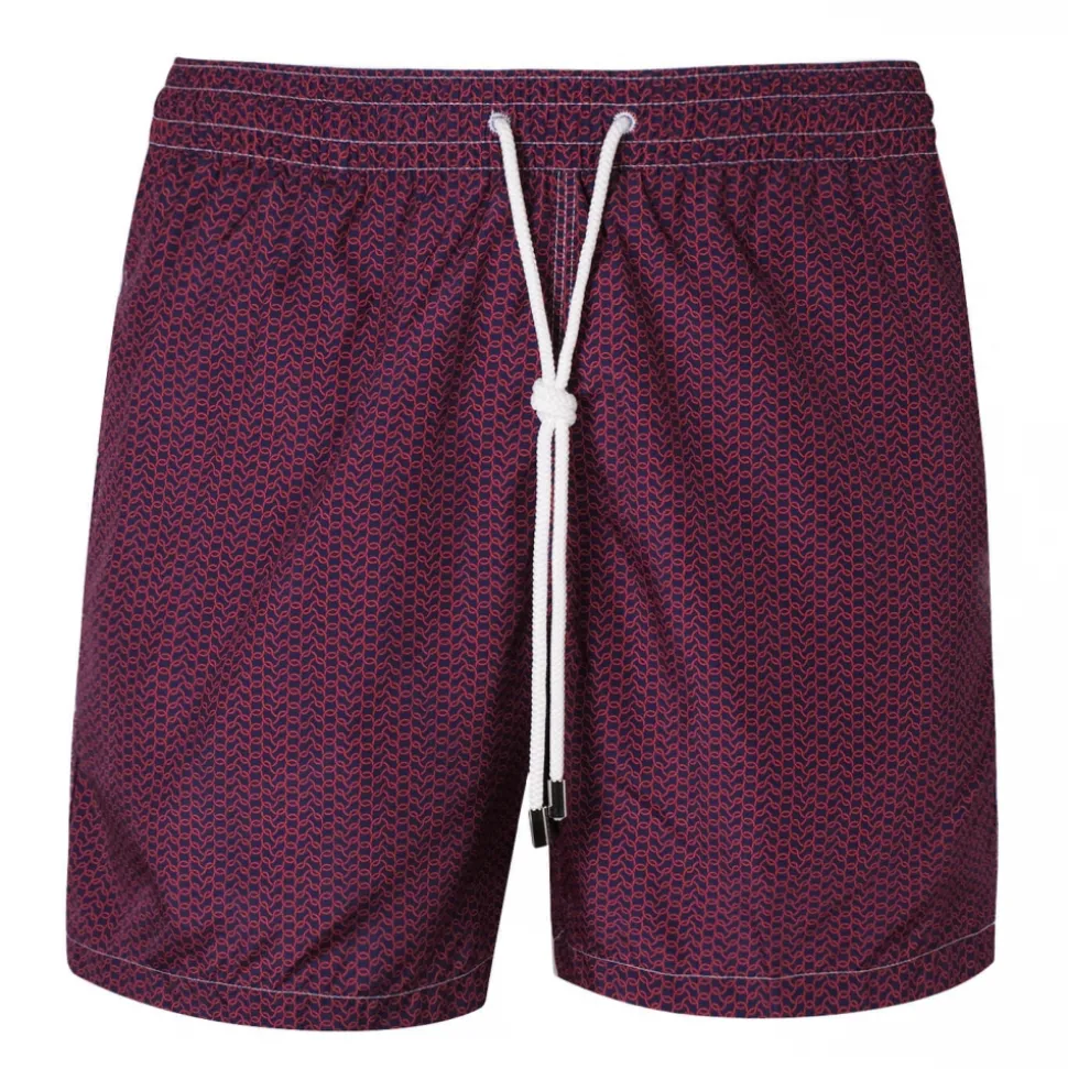 Viola Milano – Wave Pattern Printed Swimtrunks – Navy and Red – Handmade in Italy – Luxury Exclusive Collection