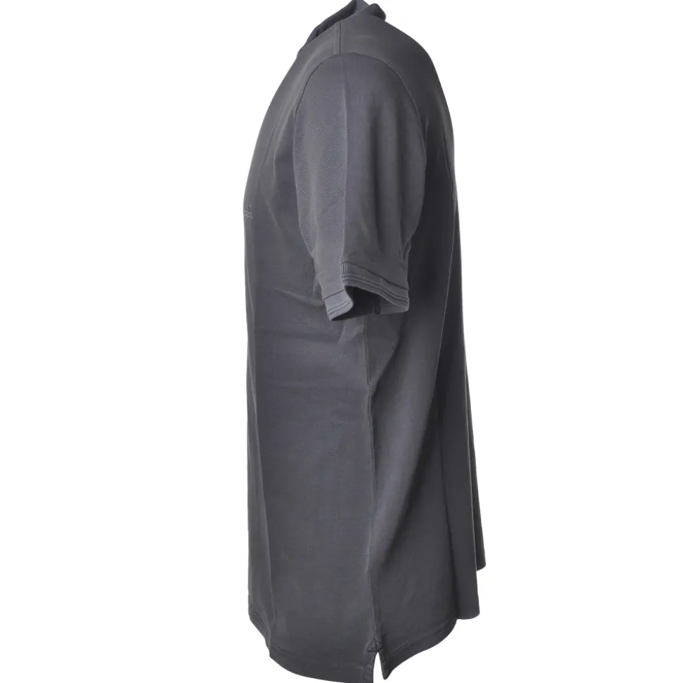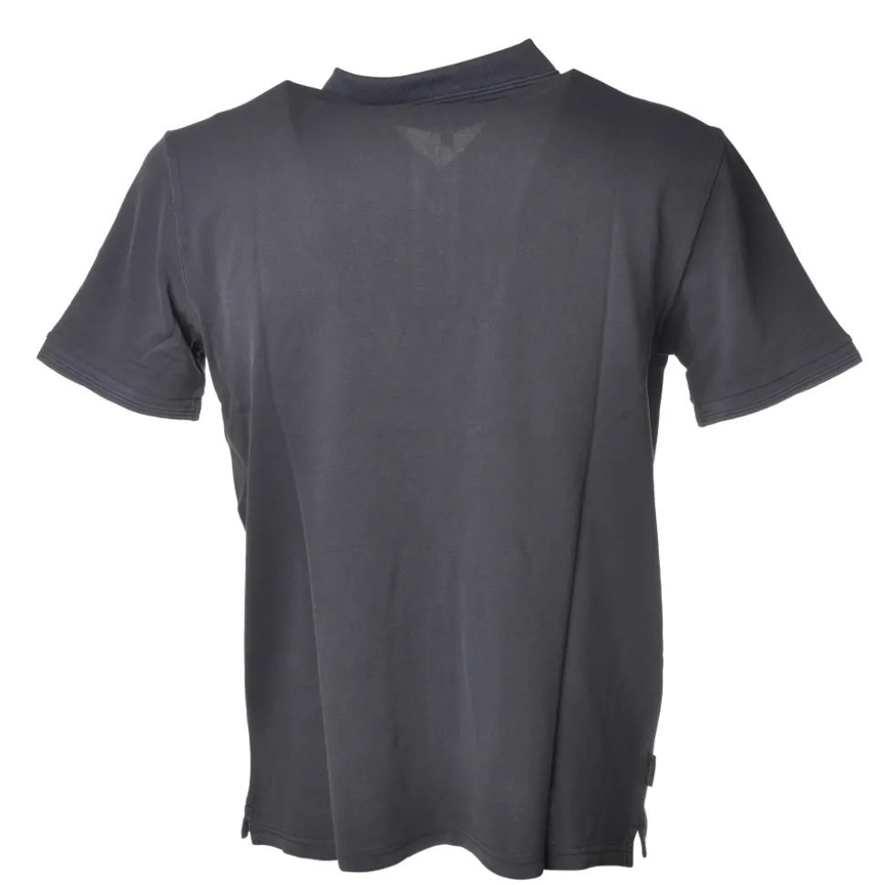 Short-sleeved polo shirt with embroidered company logo on the upper left front side, entirely made in garment dyed.