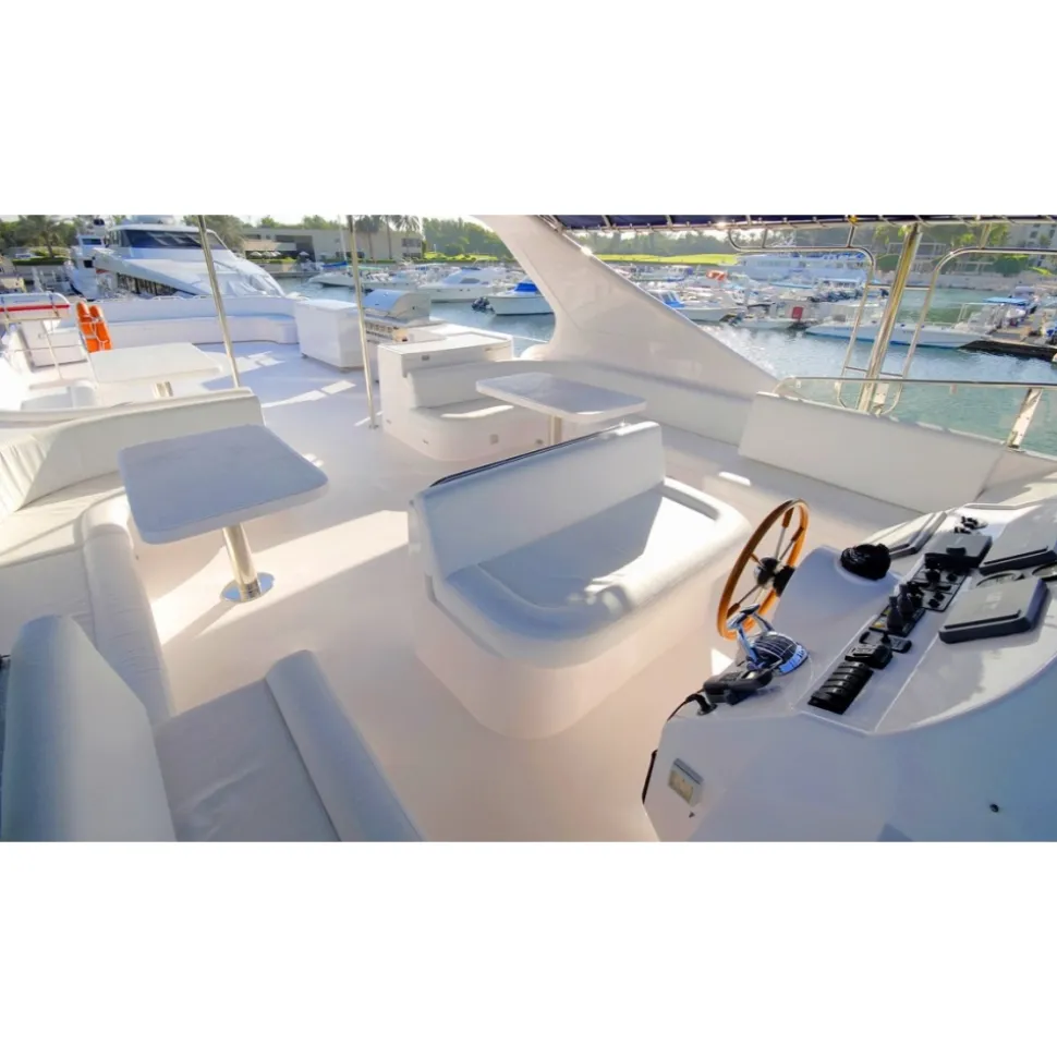 She has an extra large flybridge, which can be used as a reception area for you and your guests to take in all the great views and landmarks throughout the duration of your cruise.