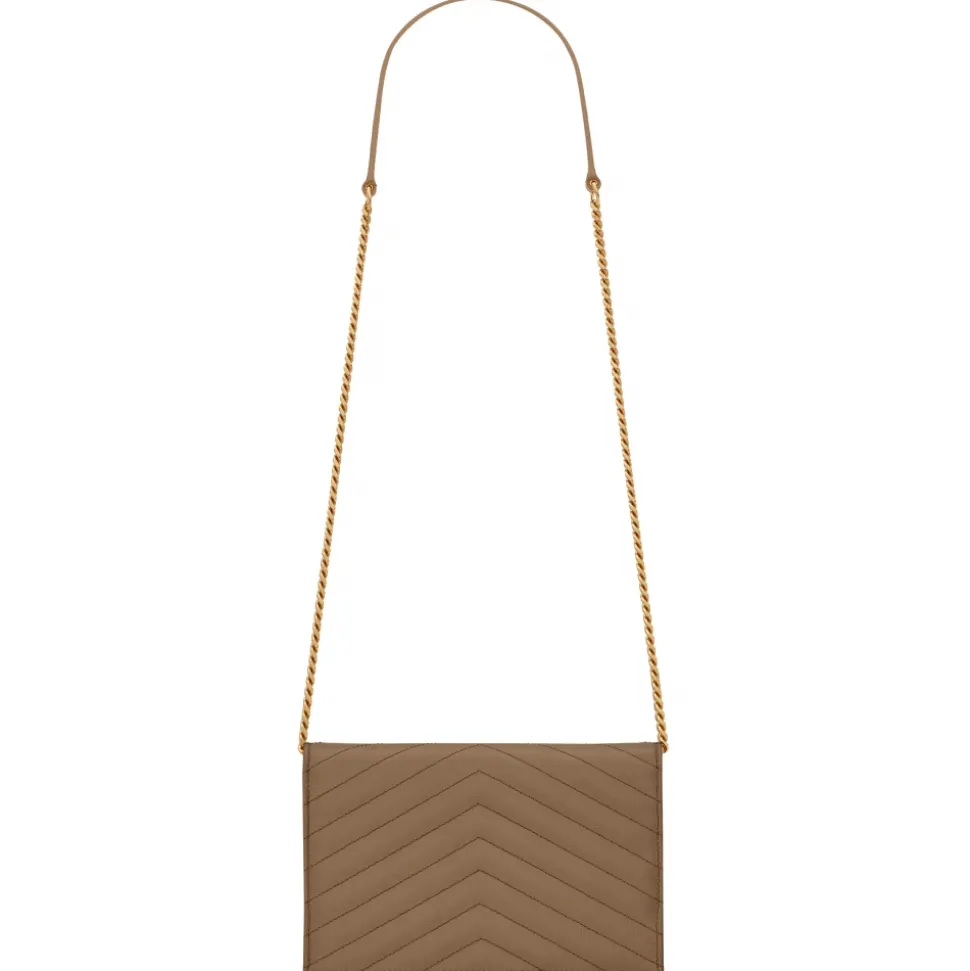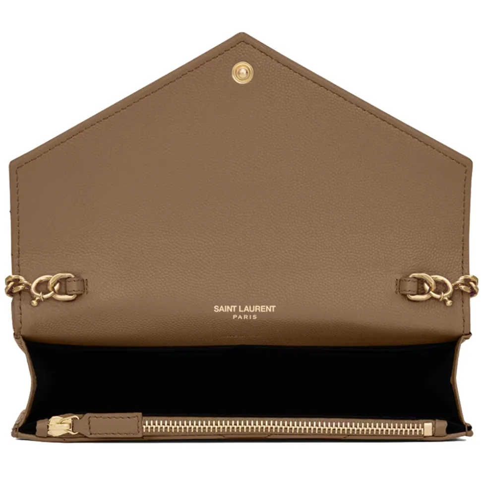 Yves Saint Laurent – Cassandre Envelope Chain Wallet in Grain De Poudre Leather – Taupe – Saint Laurent Exclusive Collection