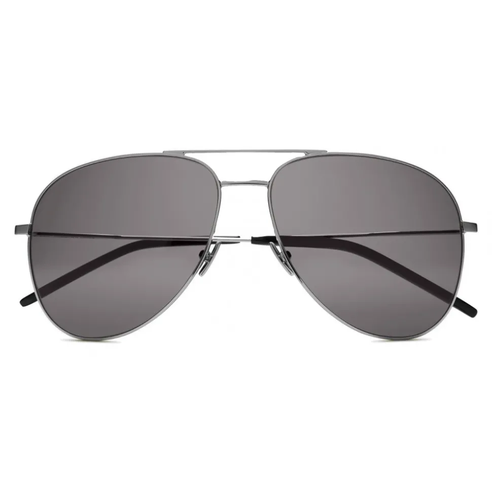 Aviator sunglasses with oxidized silver double iron bridge and nylon lenses.