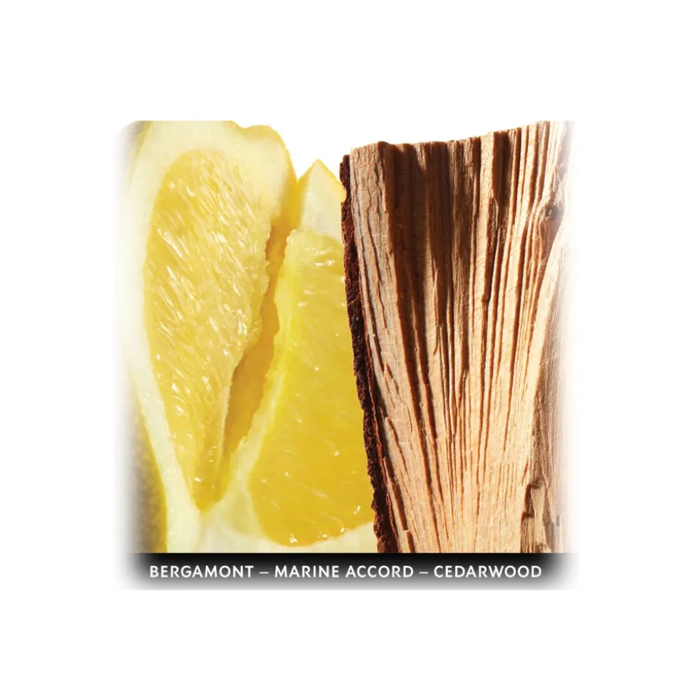 At the opening, a cool freshness awakens the senses. An essence that’s zingy – with blood orange, grapefruit, mandarin and bergamot that is contrasted with a hint of black pepper and cardamom. Calm, controlled and composed, the heart opens with a blend of apple, geranium, thyme and lavender, inviting you in. And then, the Marine Accord, Oceanol, brings the freshness of Bleue. Understated Cedarwood essence rounds out the fragrance, bringing a sense of elegance and sensuality.