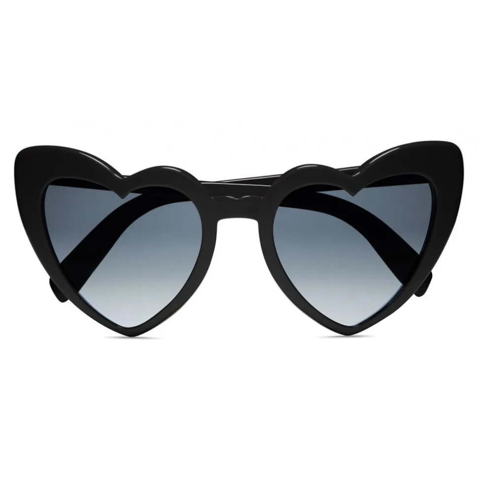 New Wave SL 181 Loulou heart sunglasses with bright black motif. Heart-shaped oversized sunglasses with nylon lenses and acetate temples.