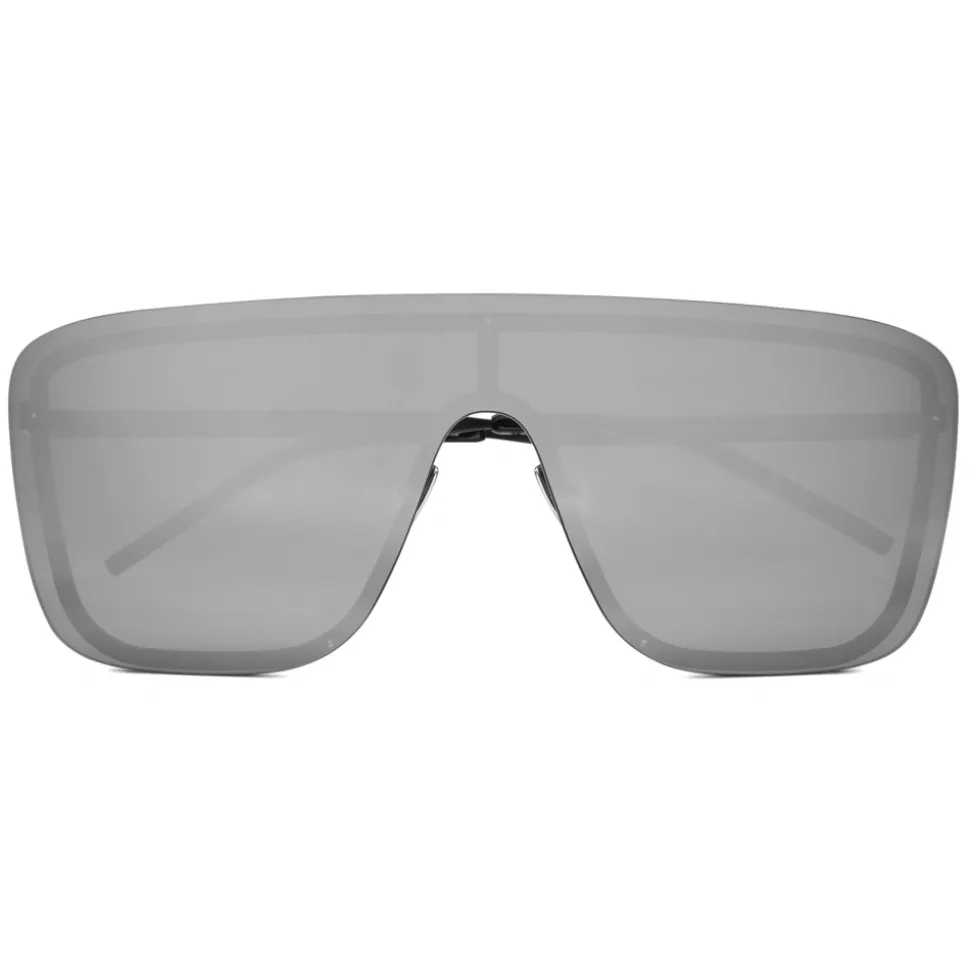 Shield sunglasses featuring a metal frame with Saint Laurent engraved temples and a nylon monolense.