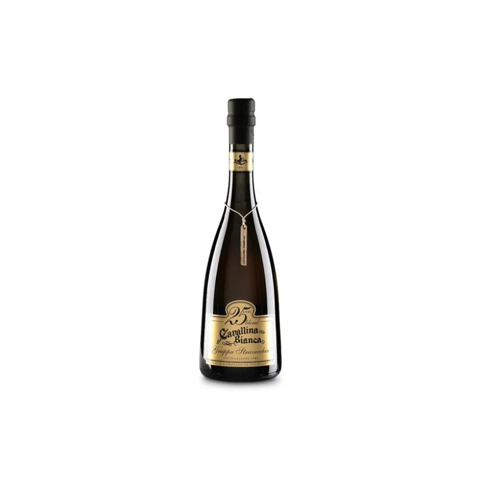 La Grappa Cavallina Bianca Blend 25, comes from the distillation of mixed and selected pomace. This fantastic grappa has made 25 years of aging in oak barrels. A rarity that has the power to bring the 5 senses back a quarter of a century. It is a grappa for real connoisseurs who want something certified and numbered, kept in a wooden box made with the same essence of the barrels that have refined it for those 25 years.