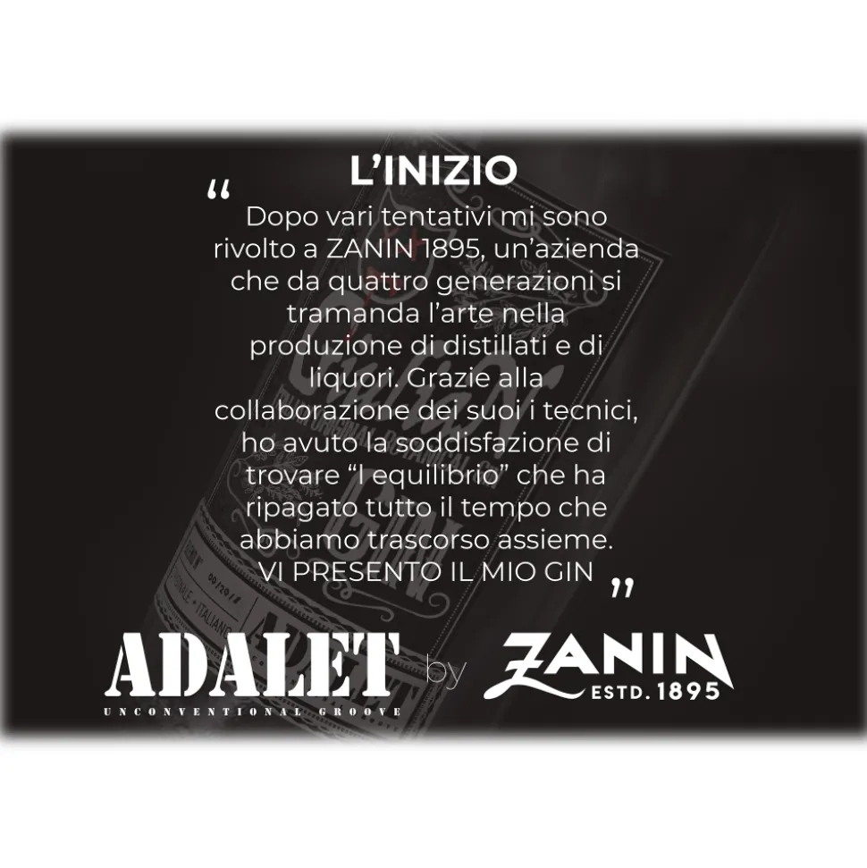“After several attempts I turned to ZANIN 1895, a company that has handed down the art in the production of spirits and liqueurs for four generations. Thanks to the collaboration of its technicians, I had the satisfaction of finding” l balance “that has repaid all the time we spent together. I PRESENT MY GIN”